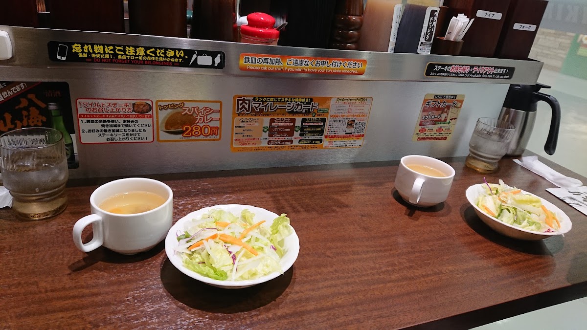 One of the standout dishes at Ikinari Steak is the ワイルドステーキ300g (Wild Steak 300g), a flavorful, juicy cut of steak that is sure to satisfy even the most discerning steak lover. Served alongside サラダとスープ (salad and soup), it’s the ideal choice for anyone who wants a fulfilling, delicious meal. The freshness of the salad and the richness of the soup complement the hearty steak perfectly, creating a well-rounded dining experience. Whether you're stopping in for a quick bite or enjoying a leisurely meal, this dish never disappoints.